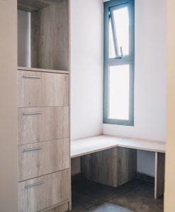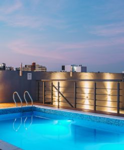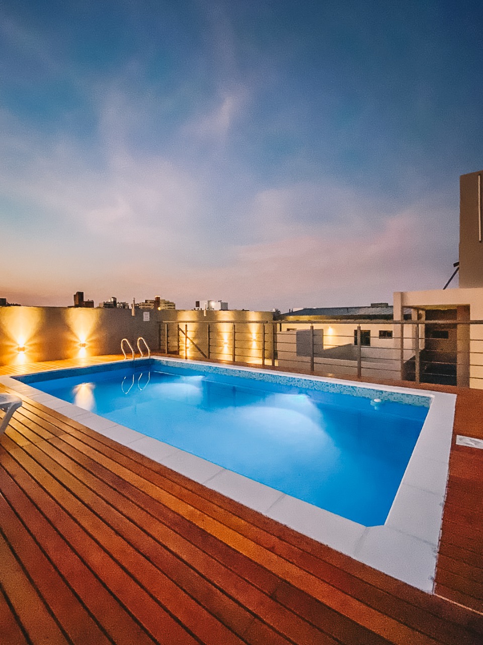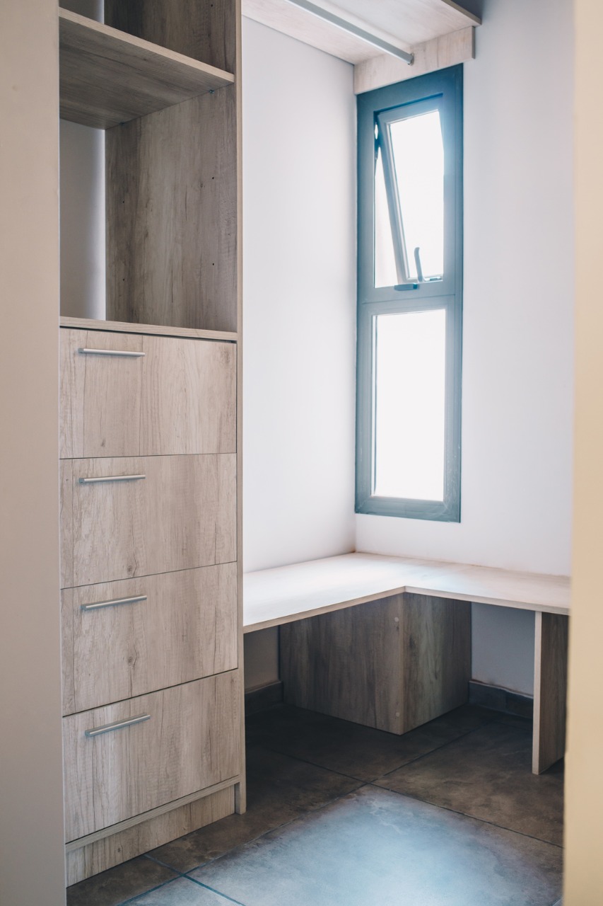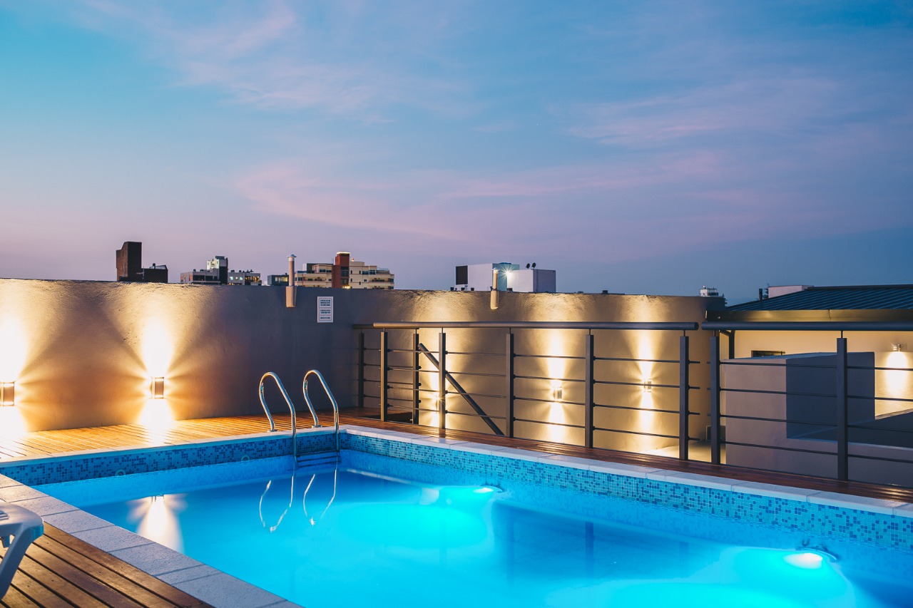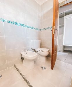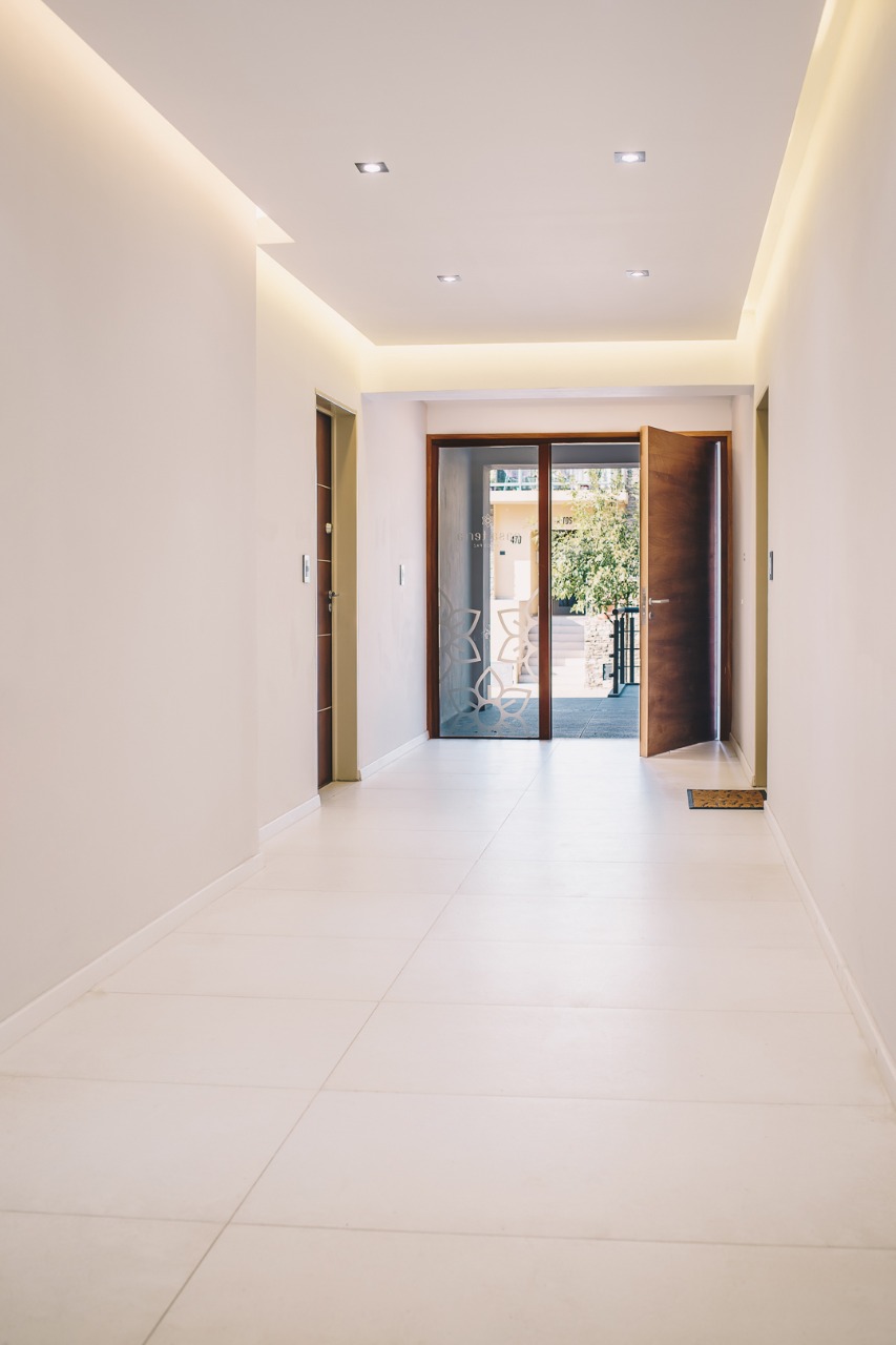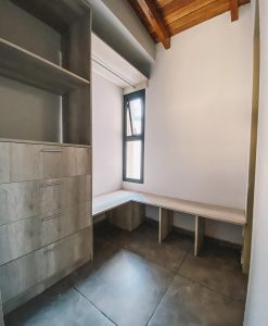 Pisos porcelanato 60 x 60 color simil cemento, cocina con granito negro brasil y muebles de cocina con melamina Faplac, líne nórdica color helsinski, caldera dual Euterma con gas natural, vestidor en dormitorio con cajoneras todo en color helsinski de la línea nórdica faplac, revestimiento en yeso, aberturas de aluminio, preinstalación de aire acondicionado, amplio balcón galería al frente, ascensor, piscina con solarium y sum.