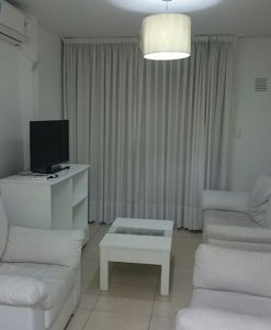 Departamento con balcon a la calle a 1 cuadra y media del puente central sobre avenida 9 de julio, consta de 2 dormitorios uno al frente, 2 baños (1 toilette y ante-baño-baño), cocina con grandes alacenas y espacio para lavarropas, comedor diario amplio, living con puerta ventana saliente al balcon que da a la calle, caldera dual, calefaccion por radiadores (ya colocados), ascensor y escaleras, cochera en el mismo edificio, piscina y asadores en azotea, gas natural….CAPACIDAD PARA 4 O 5 PERSONAS…SOLAMENTE FAMILIA …SIN ROPA BLANCA